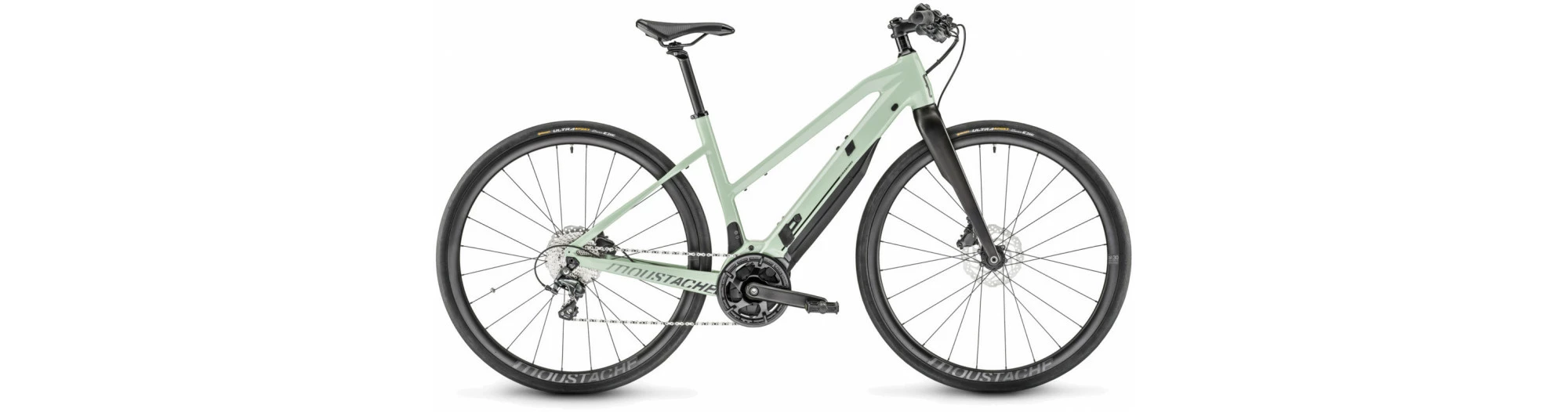 Un cintre plat sur un vélo de route ! Oui oui ! Et c’est même franchement super pour ouvrir encore un peu plus la pratique car les commandes tombent sous la main, bien pratique quand on n’est pas pilote expérimenté ou qu’on cherche le maximum de confort ! Et quel confort ! Grâce au cintre Moustache Flexbar par Baramind, légèrement flexible vers le bas, qui filtre les vibrations à merveille ! Balade ou sortie sportive, vous allez aimer rouler !
