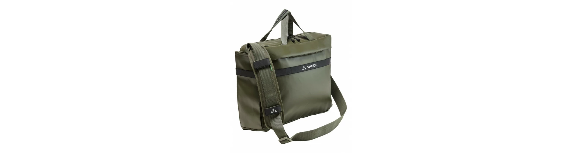 Serviette porte-documents et sacoche de vélo tout en un : cette sacoche de bureau convertible se monte et se démonte en un geste sur le porte-bagages à l’aide d’un rail Plug and Ride. Elle convient donc parfaitement au vélotaf quotidien et se porte aisément à pied : il suffit d’escamoter le rail dans le logement latéral prévu à cet effet. Le compartimentage de la sacoche Mineo Commuter Briefcase 17 est également bien conçu : un mobile et d’autres affaires trouvent place dans le compartiment zippé arrière ; le compartiment avant peut accueillir un journal, un bloc-notes et un snack tandis le grand compartiment principal zippé permet de loger aisément un ordinateur portable 15,6″, des documents et même un classeur complet. Un porte-bouteille intérieur maintient fermement une boisson en place et d’autres éléments comme un porte-crayons et un porte-clés assurent une bonne organisation. La daisy chain (boucles de fixation) multifonction et dotée d’éléments réfléchissants imprimés permet de compléter le chargement de la sacoche ou de l’enficher sur un trolley. Le matériau robuste certifié bluesign® est exempt de PVC, antisalissures, et peut braver les adversités du quotidien en ville. En tant que membre élevé au rang de Leader de l’organisme indépendant Fair Wear, VAUDE s’engage en faveur de conditions de travail et de salaires équitables. Le label Green Shape de VAUDE garantit un produit écologique, fonctionnel et fabriqué dans des matériaux durables. Ce produit est de plus climatiquement neutre : les émissions issues des matériaux, des processus de fabrication et du transport ont été déterminées de manière holistique et systématiquement réduites. Les émissions actuellement inévitables ont été entièrement compensées par l’organisation indépendante à but non lucratif « myclimate ».